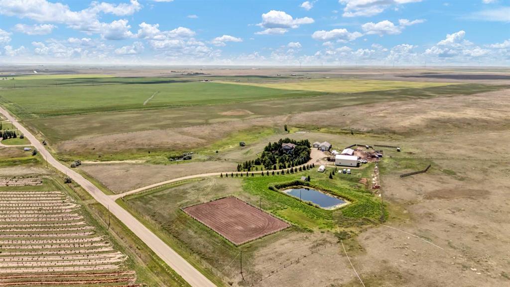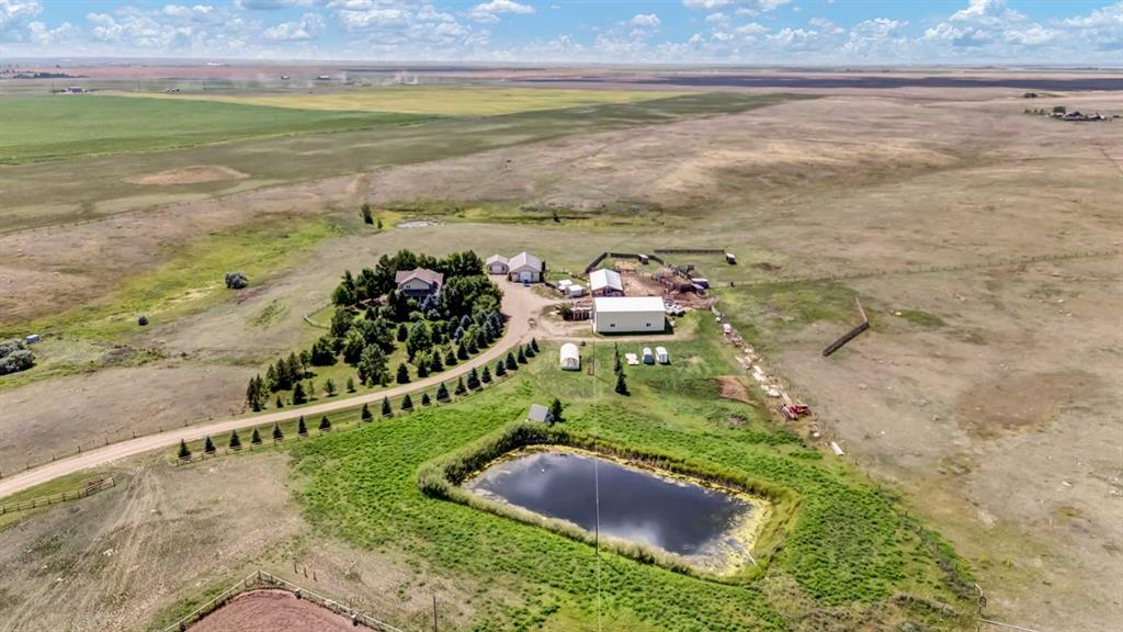 Dare to Dream? Make your dreams come true on this one-of-a-kind property! 150 acres +/- of Paradise just a 15 minute drive from the city of Medicine Hat ( all on paved road). This property has it all…AG2 Zoning; Facilities to board horses ( Barn with floor drain , Riding Arena, Shelters , 3 Waterers, Cross fenced ) , Workshop with upgraded power and ventilation system, Paint Shop, Extra Large Heated Workshop with Oversized door and a Cold Room set up (perfect for hunters), temperature controlled Greenhouse, Steel Sheds , Kennel, Dugout ( SMRID water ), Registered Dam, 40 acres +/- of dry flat land currently seeded to hay ( possibility to add irrigation rights for this ). Live your best life AND incorporate multiple revenue streams! All of this PLUS over 3000 sq ft of living space on 3 levels in a custom built walk-out 2 storey home. This well considered design speaks of quality and care. The Kitchen features Top Notch custom cabinetry, granite counter-tops , gas range , and dual wall ovens. There is a breakfast space with adjacent deck with a gas line for the BBQ, as well as a formal dining area with access to the Wrap Around Deck. Both decks offer privacy and some very nice views tucked in amongst the mature trees and landscaping. There is a conveniently located main floor laundry, a 2-piece powder room with a copper sink, the living room features a cosy wood pellet stove, and there is quality tile and warm distressed board flooring throughout the main floor. There are 2 spacious bedrooms on the upper level including the primary with walk-in closet and an exceptional ensuite with soaker tub , walk-in shower, and dual sinks. There is also a second full bathroom on this level .The lower level walk-out basement offers excellent light and leads out to an at-grade patio space overlooking the lawn. There is a large family room with a unique coffered wood ceiling, office nook, third bedroom, full bathroom, cold storage room, gas fireplace, and the utility room. Other features include an attached heated double garage 28 x 30 with oversized door, and RV pad with power hook-up. This is a home and location that must be seen to be truly appreciated! Call your REALTOR® for a private viewing , then consider purchasing the lifestyle you have always dreamed of. Seller will consider trade towards purchase on a smaller property.