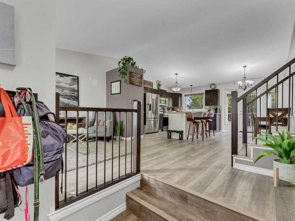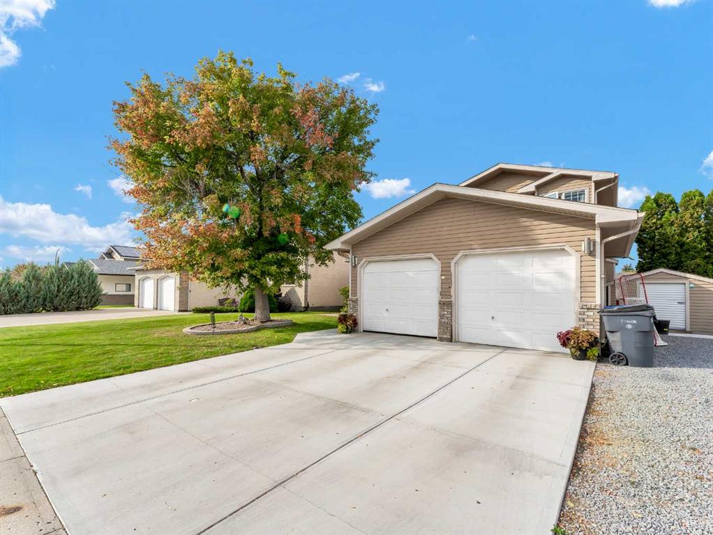 Beautifully updated home located on a quiet street in a sought-after neighborhood! This 5 bedroom, 3.5 bathroom home full developed offering 2853 square feet of living space, is perfect for a growing family and has seen so many thoughtful upgrades in recent years including: furnace (2023), hot water tank (2023), driveway (2023), sump pump (2023), basement development (2023), gemstone lights (2022). The kitchen shines with its granite counters, pantry, island with eat up seating, and updated finishes, while the flooring, bathrooms, and majority of windows have also been refreshed. Off the front of the home is an entry space, a formal seating area making for a second living room on the main level, and ample space for dining off the backyard access point. The main floor offers a functional open concept footprint allowing great flow from space to space. You’ll notice the care and attention to detail right from the main entrance, where the vaulted ceilings have been scraped and painted, creating a bright, open gathering space. The casual living room is warm and inviting with a bay window overlooking the backyard and a gas fireplace to cozy up to in the evenings. This level also includes a bedroom, laundry room, 2-pc bath, and direct access to the heated attached garage. Upstairs, the primary suite feels like a retreat with its beautifully updated ensuite featuring a custom shower, while two additional bedrooms and a clean, updated 4 piece bath complete the space. The fully developed basement (2023) is a dream for family movie nights, complete with a theatre room and projector (included), an extra bedroom, and modernly finished 4 piece bath with walk in shower and double sinks. Finishing off the basement footprint is generous storage. Step outside and you’ll love the backyard: tiered decks, an irrigated lawn, mature tree, water feature, and multiple sheds — including a large powered shed with a roll-up door for easy access from both the backyard and front. There is a hot tub (negotiable) adding to the enjoyment and ambiance of the yard. This home truly is the complete package — updated, move-in ready, and waiting for you to start making memories!