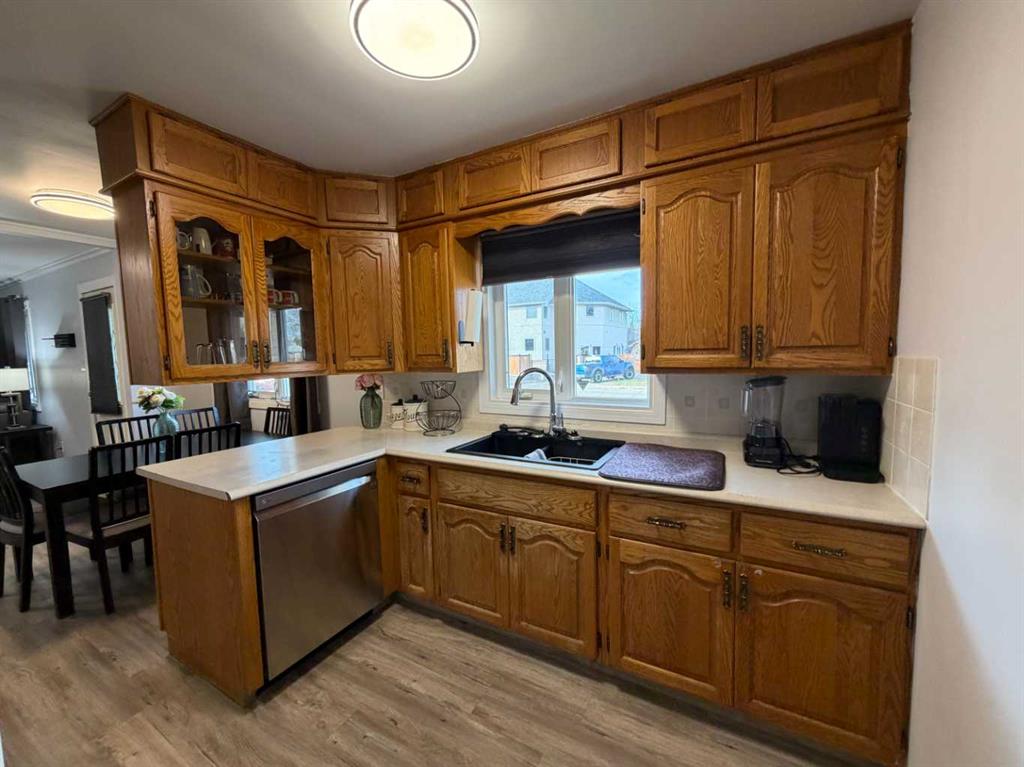 Welcome to 61 McIntosh Ave NW, nestled in a quiet, mature neighborhood and conveniently located close to schools, parks, shopping, and everyday amenities. Offering 1,508 sq. ft. of comfortable living space, this well kept home delivers a functional layout perfect for families or anyone looking for extra room to grow. The main floor features a spacious living room, a bright dining area, and a kitchen equipped with stainless steel appliances, ample cabinetry, and great storage. Down the hall are three good sized bedrooms and a full 4pc bathroom. A large bonus room/flex space on the main level adds valuable versatility—ideal for a playroom, second living room, hobby area, or home office. The lower level provides even more living space with a generous family room, an additional bedroom (no egress window), an office/flex room, a 3pc bathroom, and a dedicated laundry room. Outside, the property is fully landscaped with underground sprinklers, a double detached heated garage, and a driveway that offers off street parking. Immediate possession is available. Recent updates include some fresh paint and new vinyl flooring, giving the home a clean and modern feel.