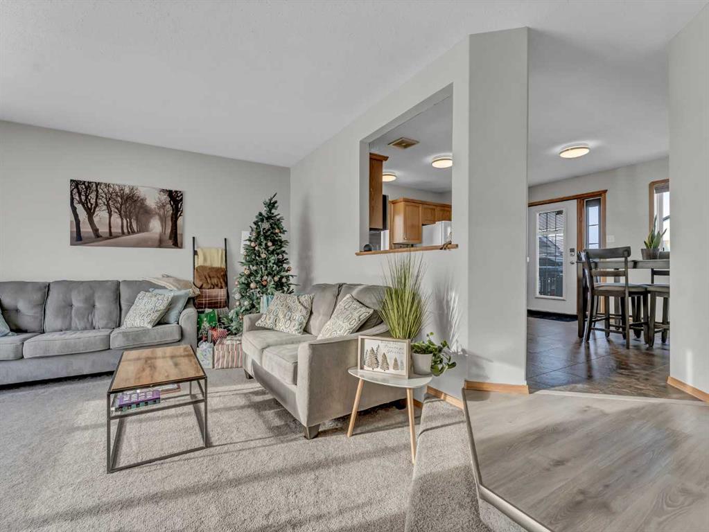 Bright and inviting, this great home offers 4 bedrooms and 3 bathrooms across a functional and comfortable layout. The upper level features a distinctive living room that creates impressive ceiling height, with two short steps leading up to a spacious, eat-in kitchen. This kitchen offers an efficient L-shaped design, a pantry and door onto the back deck over looking the yard. Down the hall, you’ll find main-floor laundry, a generous 4-piece bathroom, a secondary bedroom, and the primary suite, complete with a 3-piece ensuite and double closets. The fully developed basement provides a versatile open area. It also includes a 2-piece bathroom with a door to one of the basement bedrooms, along with an additional fourth bedroom to complete the floor plan. Outside, the property offers an upper deck, a fully fenced and landscaped yard, and a double heated detached garage with alley access. The charming curb appeal is enhanced by a double driveway, providing ample overflow parking. This is a perfect place to call home.