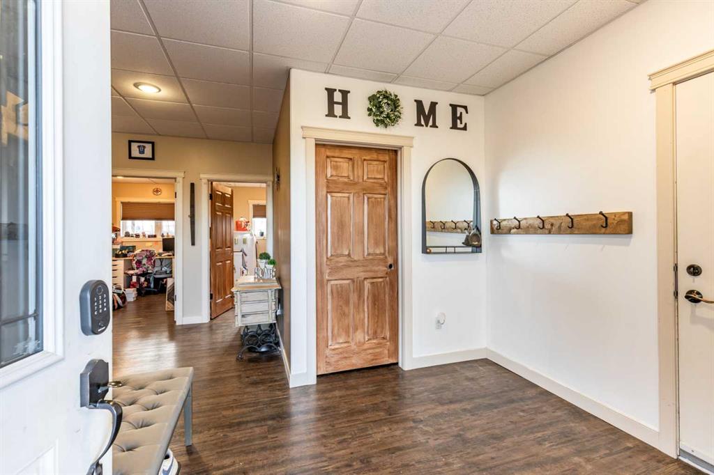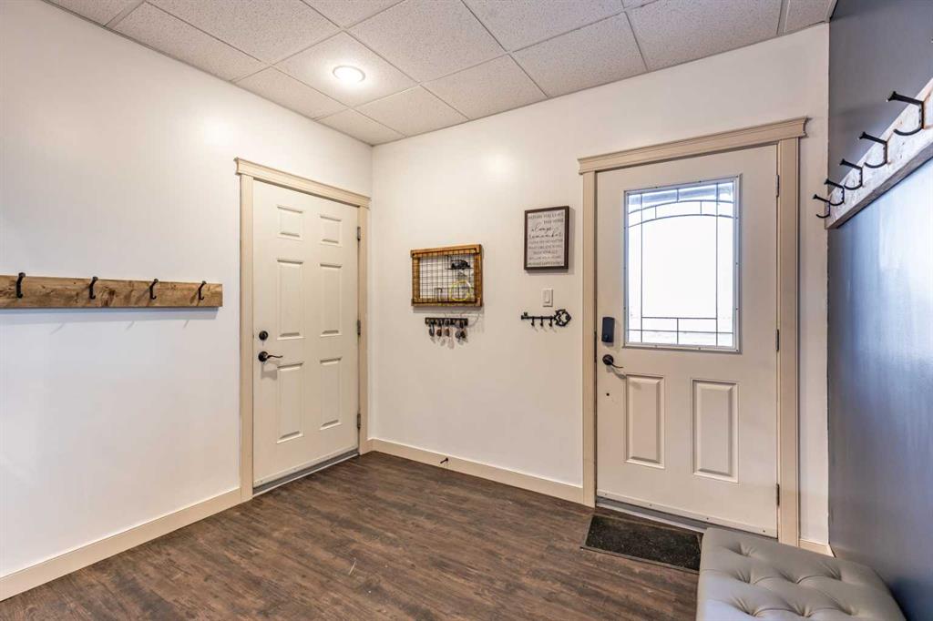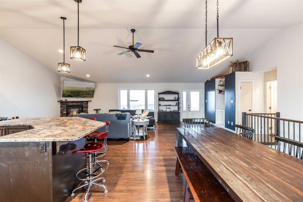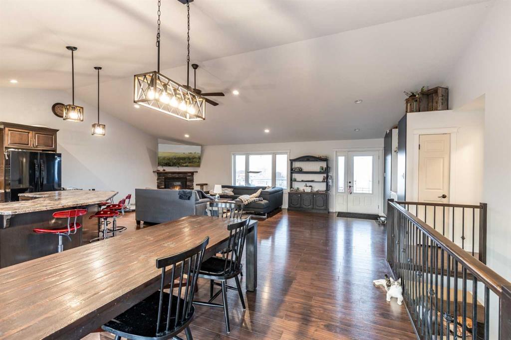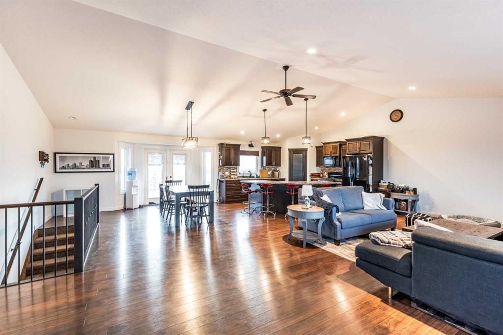 There is something to be said about escaping the city to your own little piece of paradise, especially when it's only a 20 minute drive! Tucked away in a small community just past Rattlesnake Lake, you will find this great home on a flat, well-planned 3.11 acre lot. The home was built in 2012 by Jade Homes and features a walk-out lower level and an upper floor with amazing vaulted ceilings and site-lines to the lake. The home features 5 bedrooms (3 up + 2 down) and 2.5 bathrooms , including a great en-suite with shower. Both floors offer tall ceilings and open floorplans which allows the space to move and flow with how you need it to. On the upper level, the vaulted ceilings play well with the open space , allowing the kitchen , dining and living room to flow together effortlessly. Each space is more than sufficient in its own right, but together they allow the space to feel huge and allow for easy entertaining or family meals. Every window you look out, you'll have a different view as stunning as the last, with views of the lake out your back door. The lower level has a drop everything zone and direct access to your heated double garage, which has 12 ft ceilings and a heater. There is also a dedicated laundry room, large flex space and a den/office. Your land is developed with some landscaping, full irrigation on the property and a dugout you can stock with fish or skate on in the winter. Don't forget the hen house and area for goats + chickens! The land is flat and open, with mature + new trees that will develop and give you even more privacy. The home has a septic tank + field and SMRID Rights. With the campground only 2km away and Rattlesnake lake 200 ft from your property - come see why life is better in the country, and come make this piece of paradise your own.