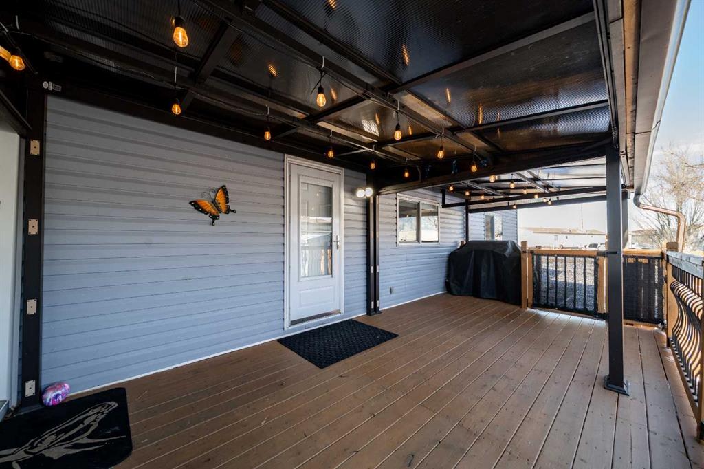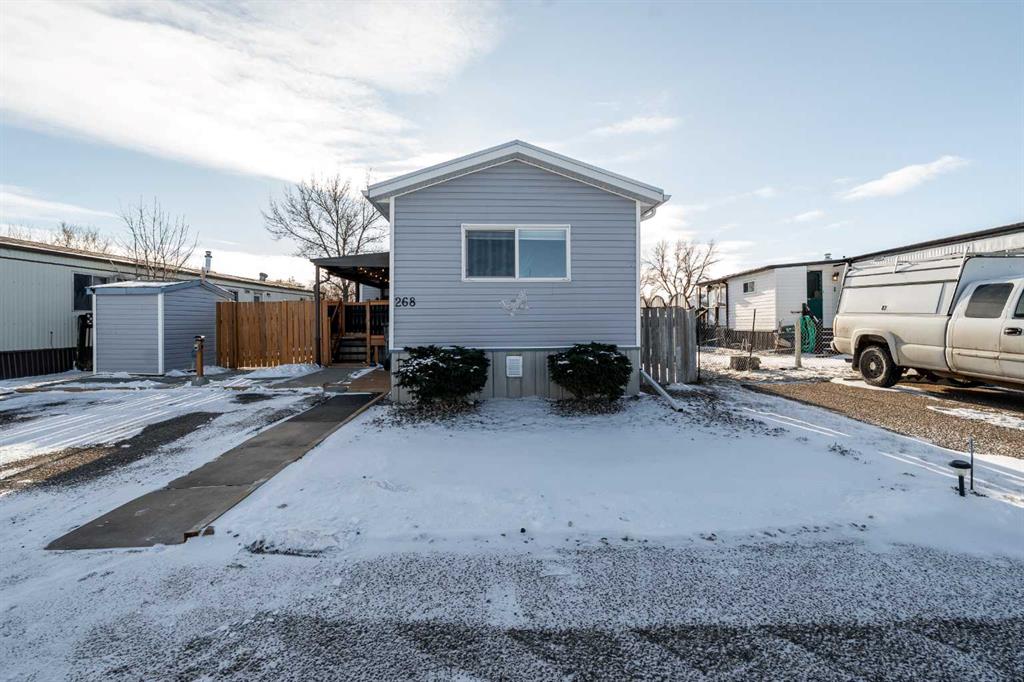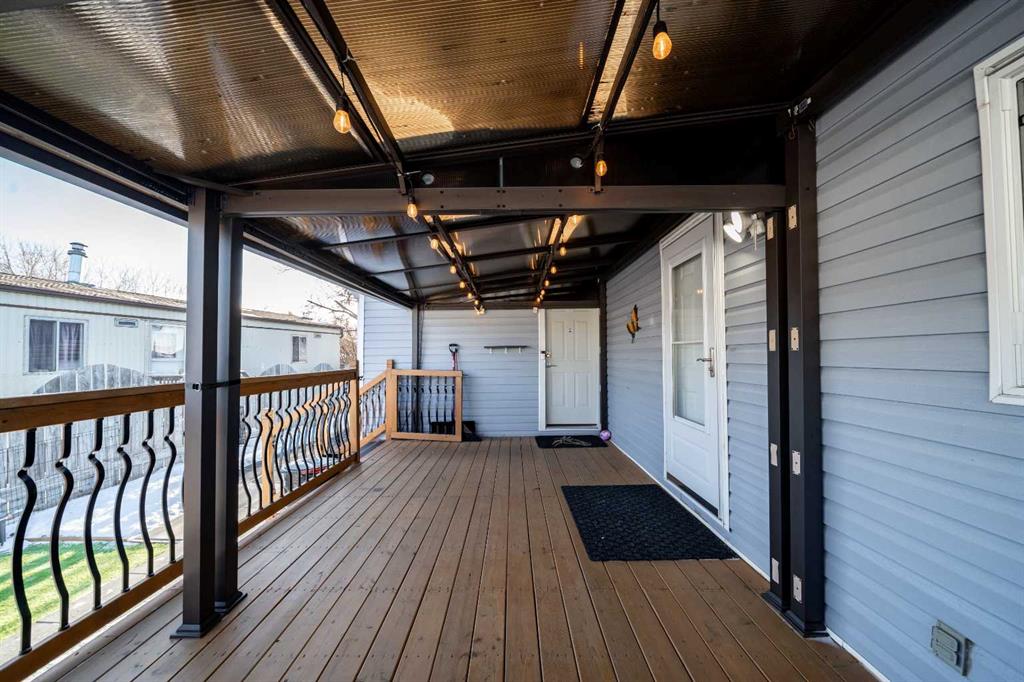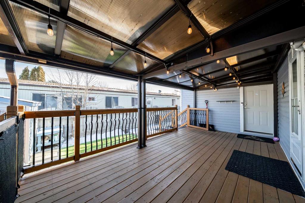 OWNED LAND, NO LOT FEES! Want low maintenance living with everything on one level...with fully fenced yard for your pets or kids? Welcome to this 3 bed 2 bath home that has been meticulously maintained inside and out. The large covered deck (19'5"x 10'5") is welcoming and a great addition to morning coffees, entertaining friends and family in the warmer months, all while being protected from the elements. It's an extension of the home! Step inside the front door to find a beautiful open concept kitchen/dining/living room with vaulted ceilings and newly incorporated pot lights to add to the abundance of natural light. The kitchen has new countertops, new sink and new side by side fridge. Enjoy simple meals at the counter seated island which also supplies numerous storage drawers/cupboards and an electrical outlet for further convenience. Down the hall, away from the noise of living, you will find a four pc bath with laundry, a generous master bedroom with 3pc ensuite and two additional bedrooms..one currently used as an office with outdoor access. No detail has been missed, inside or outside...the list is endless. A new furnace installed in July 2025, with a pump so it doesn't drain under the home (affecting moisture below)but rather into the sewer lines, new light fixtures/fans...washer/dryer and dishwasher approximately 2 years old, new flooring in master bedroom. The office has been freshly painted. Moving outside, the covered deck was stained this past summer and the gazebo has sliding panels to control level of sun etc. The yard has been completely transformed into a maintenance free zone including pea gravel and artificial grass. New sidewalks and rubber pads were installed to keep walking easy as well as a new garbage platform. There are 3 sheds and two container holding racks for added storage and convenience. Finally, the home was relevelled with new footings on cement pads and new 8ml poly/pea gravel installed with heat tape on water lines below for optimal comfort and security. Parking is never a problem, there is plenty extra in the roundabout directly in front of the home. Don't miss the opportunity to check out this great home!