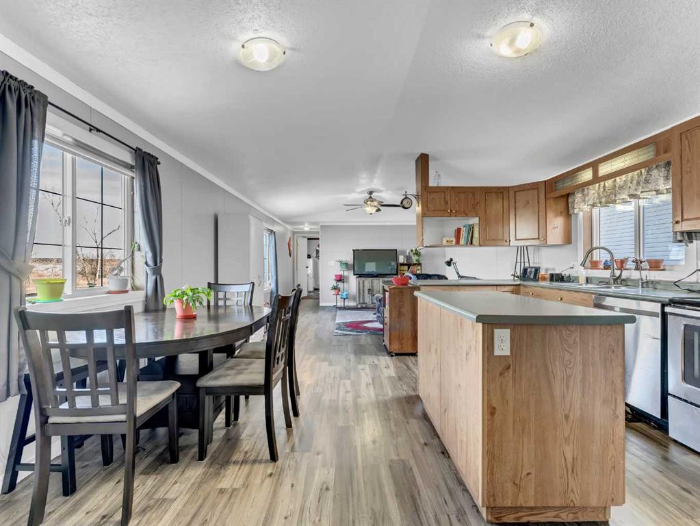 NO LOT FEES!!!! Welcome to 427 Main Street North — a fantastic opportunity to own your own land with this well-maintained mobile home situated on a spacious private lot. Offering 1,189 square feet of thoughtfully designed living space, this home features a modern open-concept layout with 3 bedrooms and 2 full bathrooms. The bright and functional kitchen is the heart of the home, complete with a beautiful island, abundant cabinet and counter space, a corner pantry, and a generous dining area perfect for gathering. At the front of the home, you’ll find a comfortable living room filled with natural light, along with the primary bedroom featuring a 4-piece ensuite for added privacy and convenience. Toward the back are two additional bedrooms, a second 4-piece bathroom, and a dedicated laundry area — ideal for families or guests. Step outside to enjoy the large yard, newly fenced for added privacy, offering plenty of space for kids, pets, gardening, or simply relaxing outdoors. Notable updates include a new roof (2019) and a new driveway (2020), providing peace of mind for years to come. Enjoy the ease of single-level living with the added benefit of owning your own lot. Whether you’re looking to downsize, simplify, or find an affordable family home, this property offers versatility and value in one complete package.